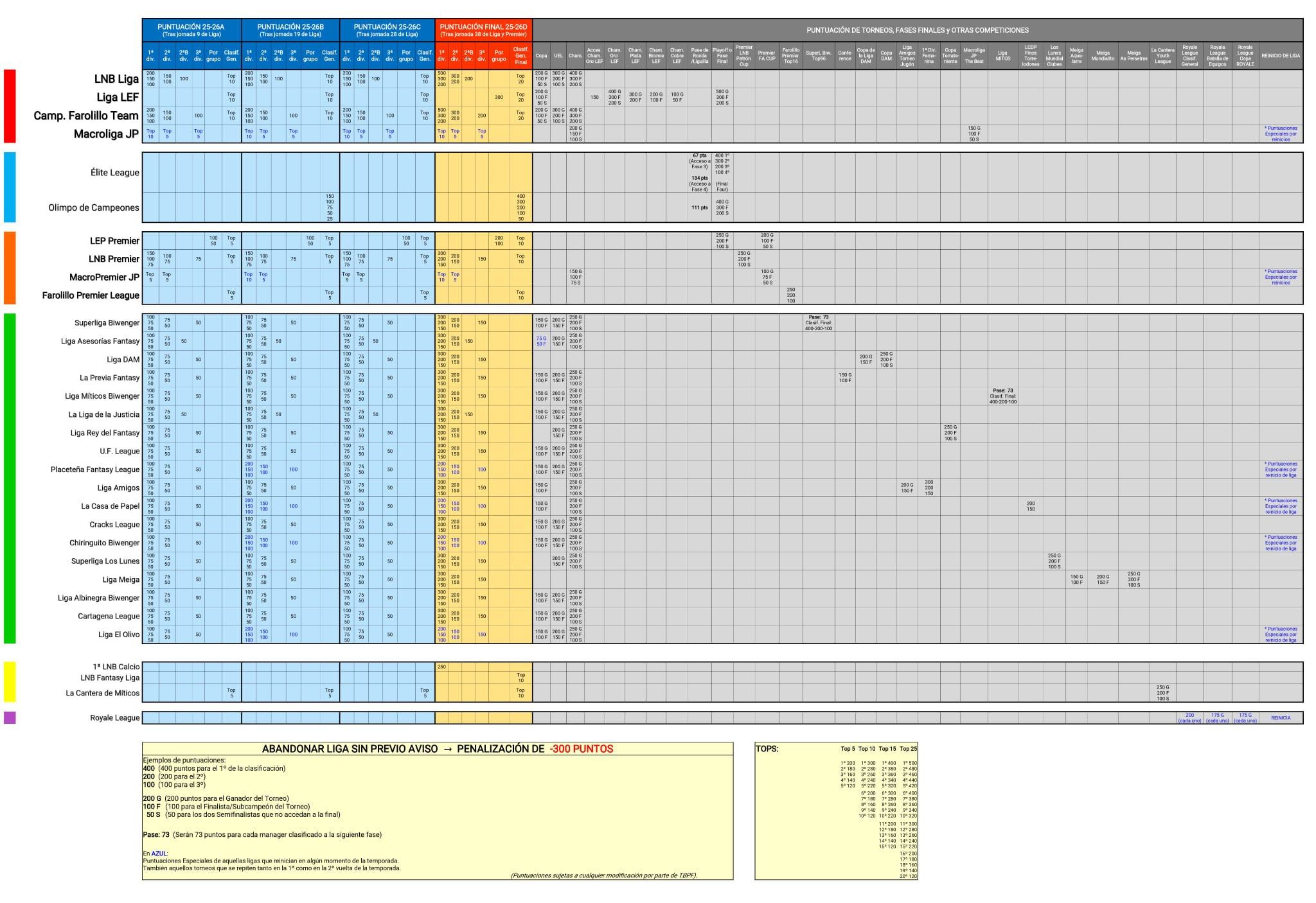 Premios : Medalla de Oro + 50 créditos al campeón. Acceso a la Liga Élite Biwenger como segundo integrante de Farolillo Team